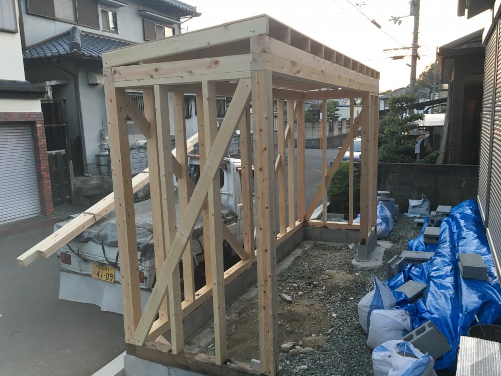 大阪店舗の合間にコチコチ 中学同級生の大工さんに手伝いに来てもらったらやぱ早いww montageの大工仕事はこれから全て彼に手伝ってもらいます(*^◯^*)同級生だしこっちの事解ってくれてるから意思疎通も形にしやすいかな 和歌山 小屋作り