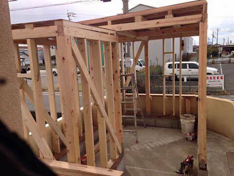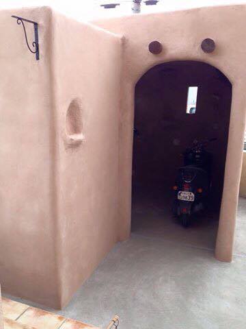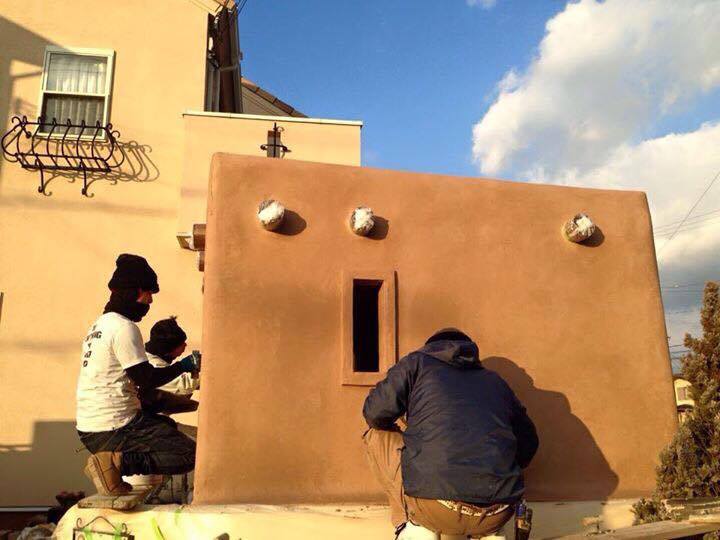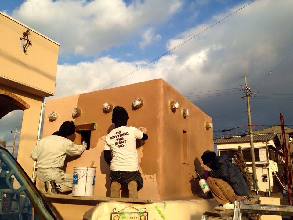 Santa Fe風の建物に住みたかった奥様が庭の空いたスペースで自転車小屋をSanta Fe風にしたい!!との依頼で作りました。外内アールにこだわり、光も計算して丸みのある温かい感じが出たし、忙しいメンバーも初めて揃って凄く思い入れがある建物になりました(>人<;) Santa Fe小屋